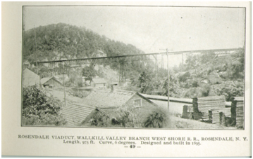 The project to restore and upgrade this 940 foot former railroad trestle built by the King Bridge Company in 1897 for use on the Wallkill Valley Rail Trail is well underway. Since 2009, the Wallkill Valley Land Trust and Open Space Conservancy have been fixing up the structure, replacing the guard rails and planking, and other improvements so that it will be able to safely carry hikers, bikers, joggers, skiers and others for about 150 feet above Rondout Creek and the old Delaware and Hudson Canal. It affords spectacular views of a piece of the Hudson River to the east and the Shawangunk Mountains to the west. This will be a high point on the 24 mile trail running between Kingston and Gardner in Ulster County, New York. The cost of the whole project is now estimated at about $1.1 million and should be finished in 2013. It is most comforting to see that this old structure can still be useful. In its heyday, the trestle carried trains loaded with cement and other building materials to New York City where they played a major role in creating the city we know today.