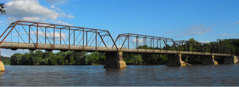 This handsome truss bridge crosses the DesMoines River at Bentonsport, Iowa was first noted in our 2011 update because it had a most interesting history from the point of view of the King family. The trusses were built by the King Bridge Company of Cleveland in 1882 under a contract with VanBuren County, then rehabilitated after it was damaged by floods some years later, by George King, Zenas King’s nephew, who had created his own bridge company with another cousin George Wheelock, both of them having learned the bridge-building trade at the knee of Uncle Zenas. It now stands as the proud emblem of this historic area. Nathan Holth describes this bridge on his historicbridges website in the following:.