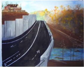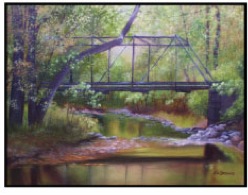 Painting by local artist R.W. Browne of the bridge and site.